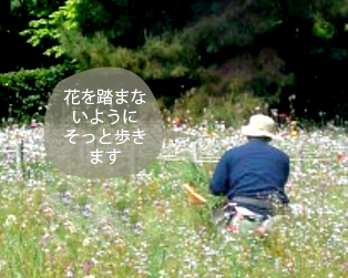 - コメントこの施設で年間に数回実施する定期的な作業です。ご覧のように自然でナチュラルに花が咲くようにタネを蒔いているので、数十種類の草花が咲き乱れます。 もちろん、雑草も同じ様に成長してくるので機械での除草は無理です。そこで、広大な敷地にあるワイルド・フラワーの中から雑草だけを手で1本1本抜いていくという大変に手間の掛かる作業です。